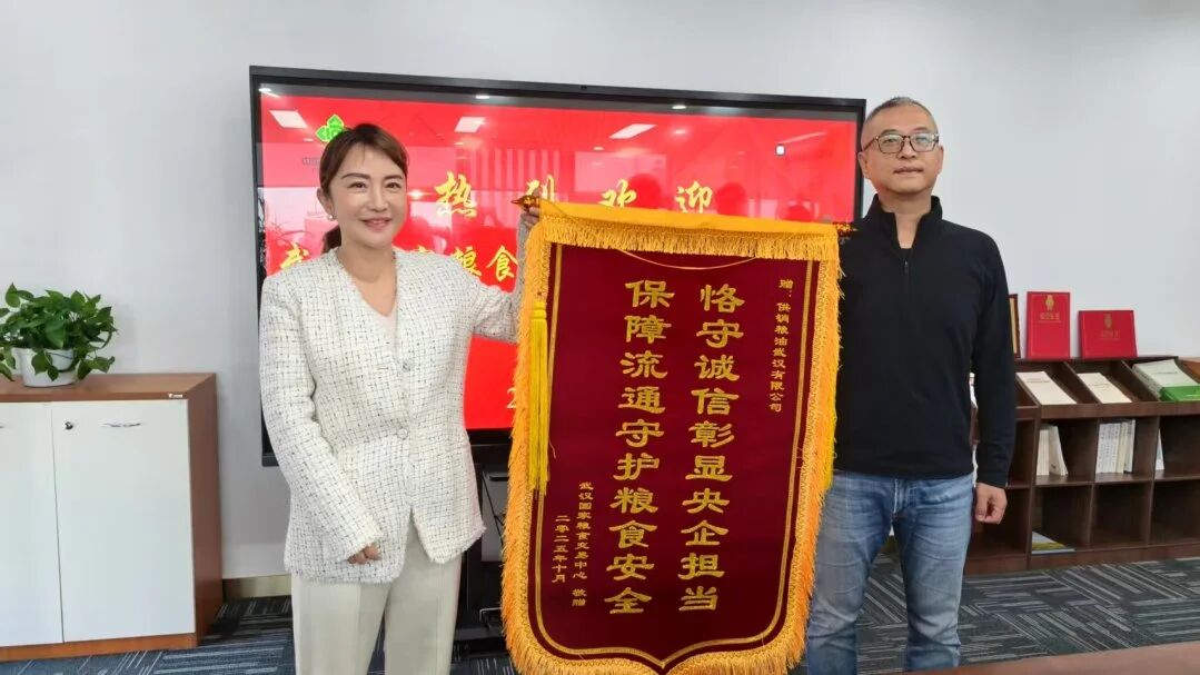 吴萍主任代表武汉湖北粮网,对武汉公司在前期合作中展现的高效履约能力给予高度认可,并现场赠送锦旗与感谢信。吴萍表示武汉公司恪守“交易规范、守约楷模”的准则,在行业内树立了诚信经营的金字招牌。随后,吴萍介绍了交易中心的发展历程与核心服务职能并表达了深化双方合作的意愿。会上,双方围绕基差交易试点推进、贸易粮专区共建、供应链金融服务落地等多项合作事宜深入探讨,最终达成共识。